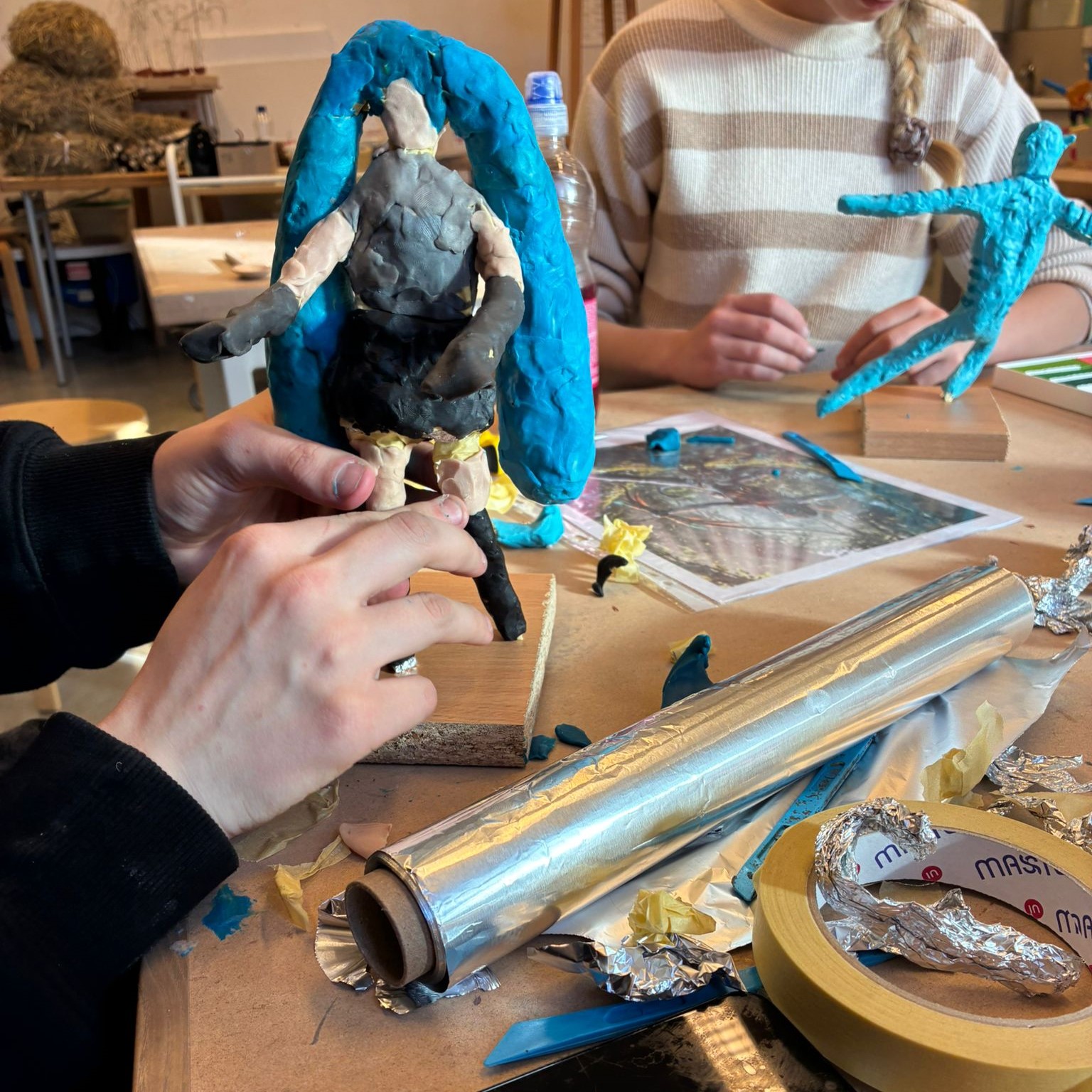 Lietuviešu pasniedzējas vadīja tēlniecības nodarbību Saldus Mākslas skolas 6. klašu audzēkņiem.
