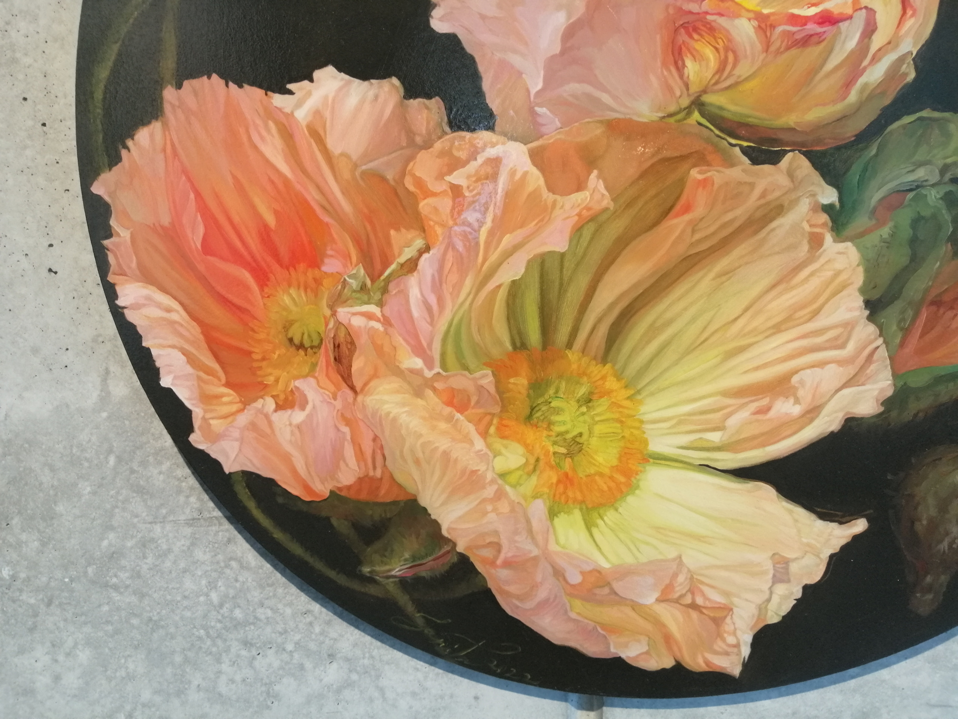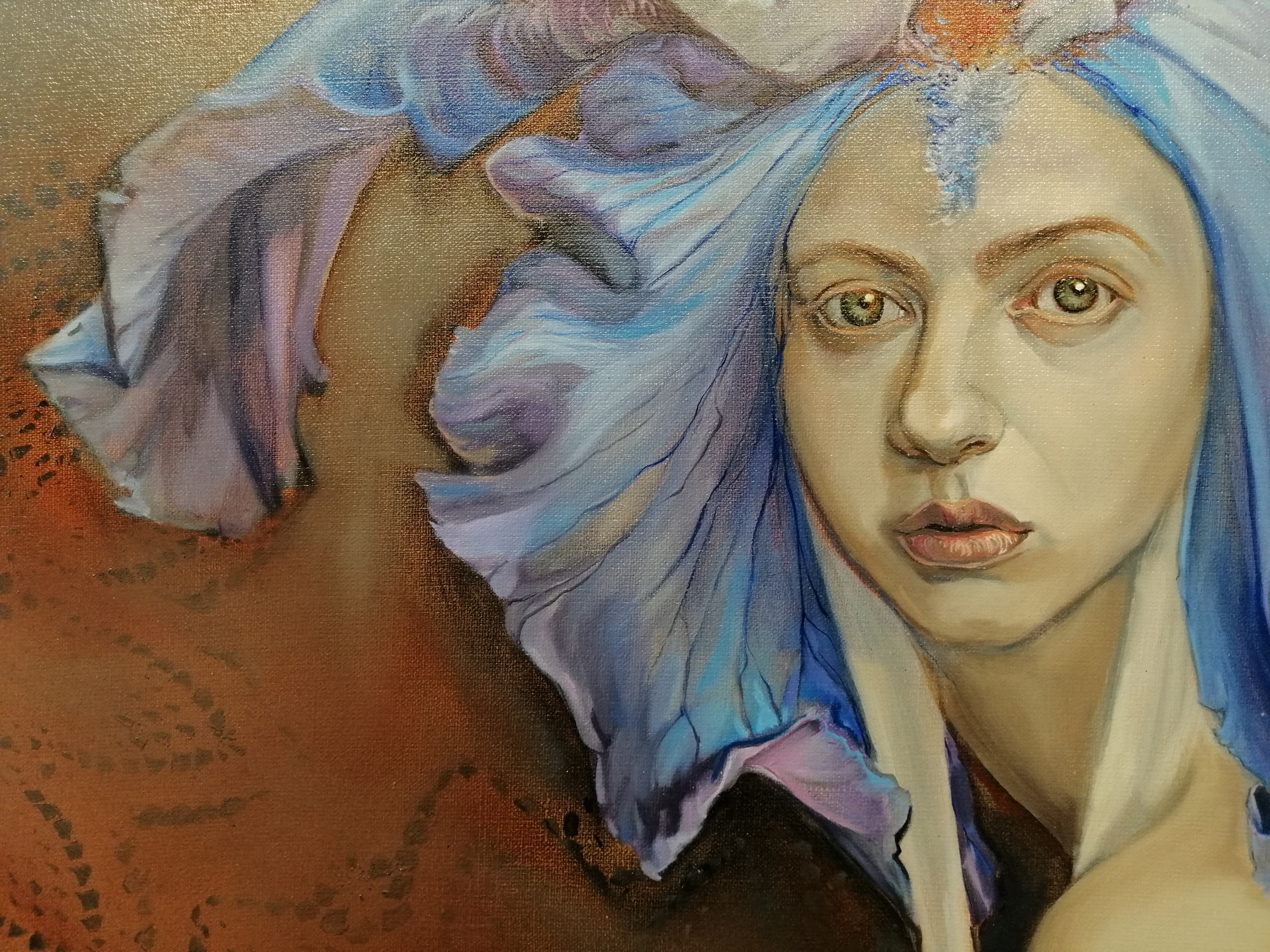 Tajā brīdī, kad skaļās sarunas un domas pierimstas iestājas tāds klusums, kas kļūst skaļāks par jebkuru pirms tam izteikto vārdu un domu, tas sāk formēt jaunas formas caur simboliem, līnijām un krāsu.  Un viens no spilgtākajiem simboliem kas attēlots vairākās gleznās ir īrisa zieds- un kā par šo ziedu Pavlīnas Kourkovas grāmatā “ Ziedu dvēsele” ir rakstīts- “Īrisa ziedlapas simbolizē trīs tikumus- drosmi, gudrību un ticību. Šis zieds ir arī cerības, spēka un gaismas, kā arī Dieva un cilvēka saiknes simbols.” Tad, kad izlasīju šo teksta fragmentu, visas manas gleznas jau bija uzgleznotas, un tikai tad es sapratu, kāpēc tieši īrisa zieds ir tik īpašs priekš manis. Katram ziedam kas  uzgleznoti manās gleznās ir savs simbols, vēstījums un valoda, bet tā, kā runā īrisa ziedi to vārdi mani uzrunā visdziļāk, jo šķiet, tie aizsniedzas līdz pašiem manas dvēseles dziļumiem un aizsniedz tās dvēseles atmiņas, ko mana fiziskā prāta lidojumam neapjaust.
